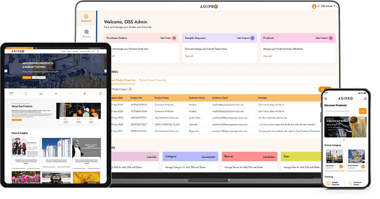Adipro International Crop (AIC) is registered as a BVI company and owns the Adipro brand. Adipro has lubricant additives and packages, specialist oil field production chemicals, technology services, and laboratory equipment. We have developed the Adipro Mobile application and Adipro Admin Web application. The Adipro Mobile application is available on the Play Store for Android and the App Store for IOS devices. Adipro mobile application will give brief information about the products, download the PDF files of the products, and provide new updates to the client. The Adipro admin portal will help the Adipro team to upload new products, edit existing products, onboard clients, and add FAQs, Notifications & Banners.